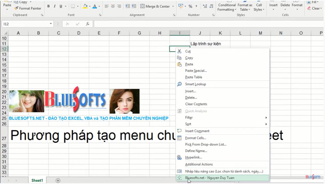 Khi bạn cần thiết kế menu trợ năng để chạy macro chuyên nghiệp bằng cách nhấp chuột phải để thuận tiện như hình dưới đây thì hãy xem hướng dẫn lập trình chi tiết để taoh menu Popup.