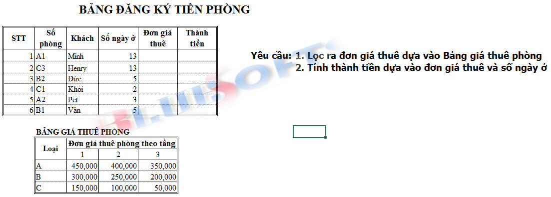 Bài 1: Lọc ra đơn giá thuê dựa vào Bảng giá thuê phòng
