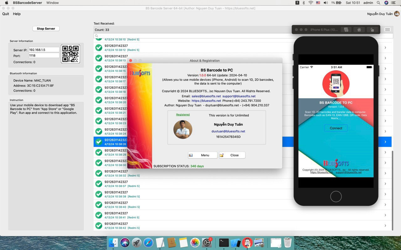 (BS Barcode Server chạy trên MacOS)